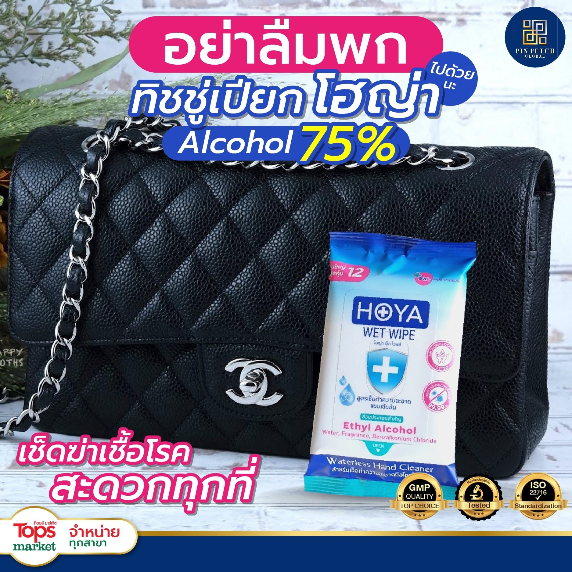 - โฮญ่า สูตรแอลกอฮล์ 75% (HOYA 75% Alcohol Wipes)