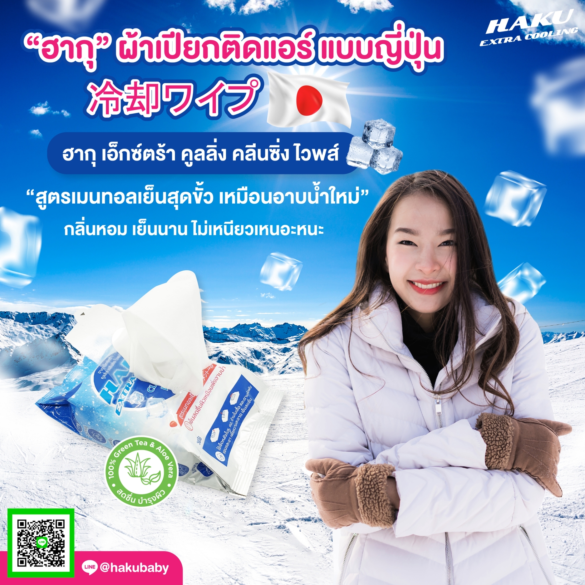 - ฮากุ เอ็กซ์คร้า คูลลิ่ง ไวพส์ (HAKU Extra Cooling Wipes)
